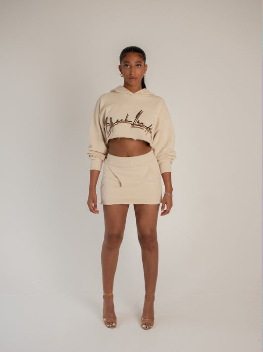Cut & Sew Cropped Hoodie and Skirt Co-Set